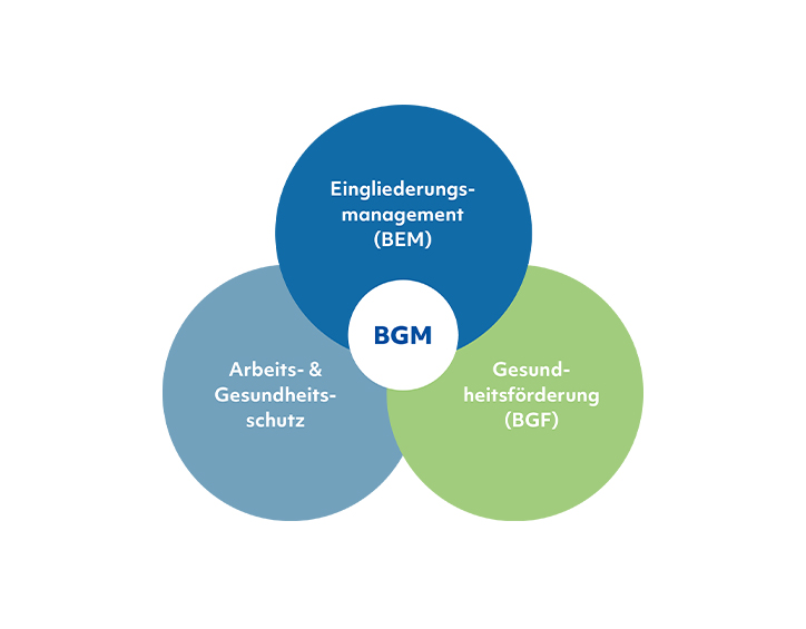 Das betriebliche Gesundheitsmanagement (BGM) verfolgt das Ziel, die Gesundheit und Leistungsfähigkeit aller Mitarbeitenden ganzheitlich zu fördern und langfristig zu erhalten. Es umfasst sowohl gesetzlich vorgeschriebene Bestandteile wie das betriebliche Eingliederungsmanagement (BEM) und den Arbeitsschutz, als auch die freiwillige betriebliche Gesundheitsförderung (BGF). Maßnahmen der BGF unterstützen die physische und psychische Gesundheit – zum Beispiel durch Schulungen, Bewegungsangebote oder Programme zur gesunden Ernährung.